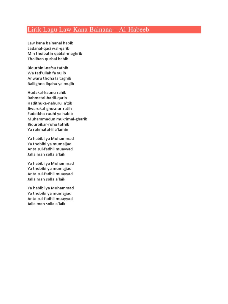 Law kana bainanal habib. Sekadar berkongsi pandangan lagu ini bukanlah sembah org yang dah mati yakni saya paham maksud saudarasaudari iaitu Rasul tercinta Nabi Muhammad SAW. Lihat pada awal lirik ia juga memperingatkan kita tentang kelalalaian yang sering dilakukan oleh manusia penulis mengambil Nabi Muhammad SAW sebagai contoh terbaik dan sememangnya.
